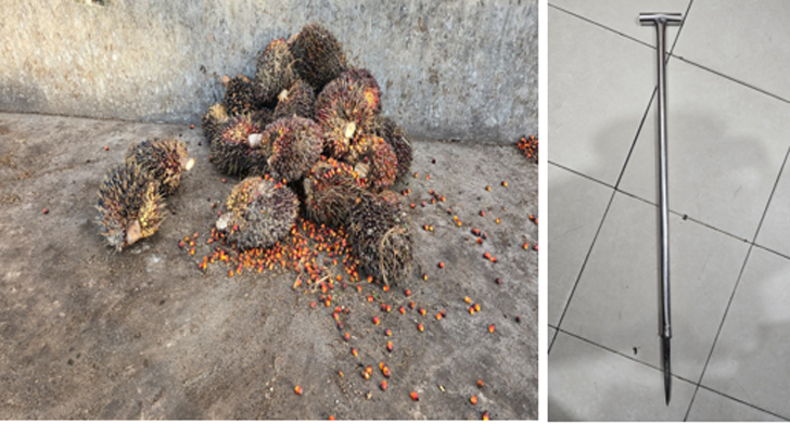 Dari lokasi kejadian, petugas mengamankan sejumlah barang bukti berupa satu buah egrek, satu tojok, satu senter kepala, serta 21 janjang buah kelapa sawit hasil curian.