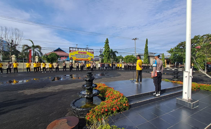 Apel pagi dilaksanakan pada Mapolresta Palangka Raya, Jalan Tjilik Riwut Km. 3,5, Kota Palangka Raya, Kalimantan Tengah, yang dihadiri oleh para Pejabat Utama, Perwira beserta personel Bintara dan PNS Polri, Jumat (7/11/2025) pagi.