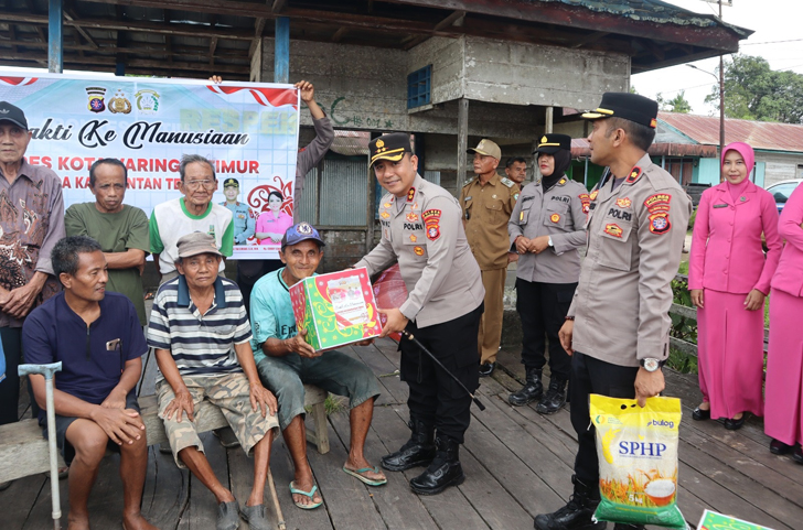 Selain itu, Polres Kotawaringin Timur juga memberikan bingkisan tali asih, berupa paket sembako dan kebutuhan lainnya kepada mereka yang terdampak di seputar bantaran sungai.