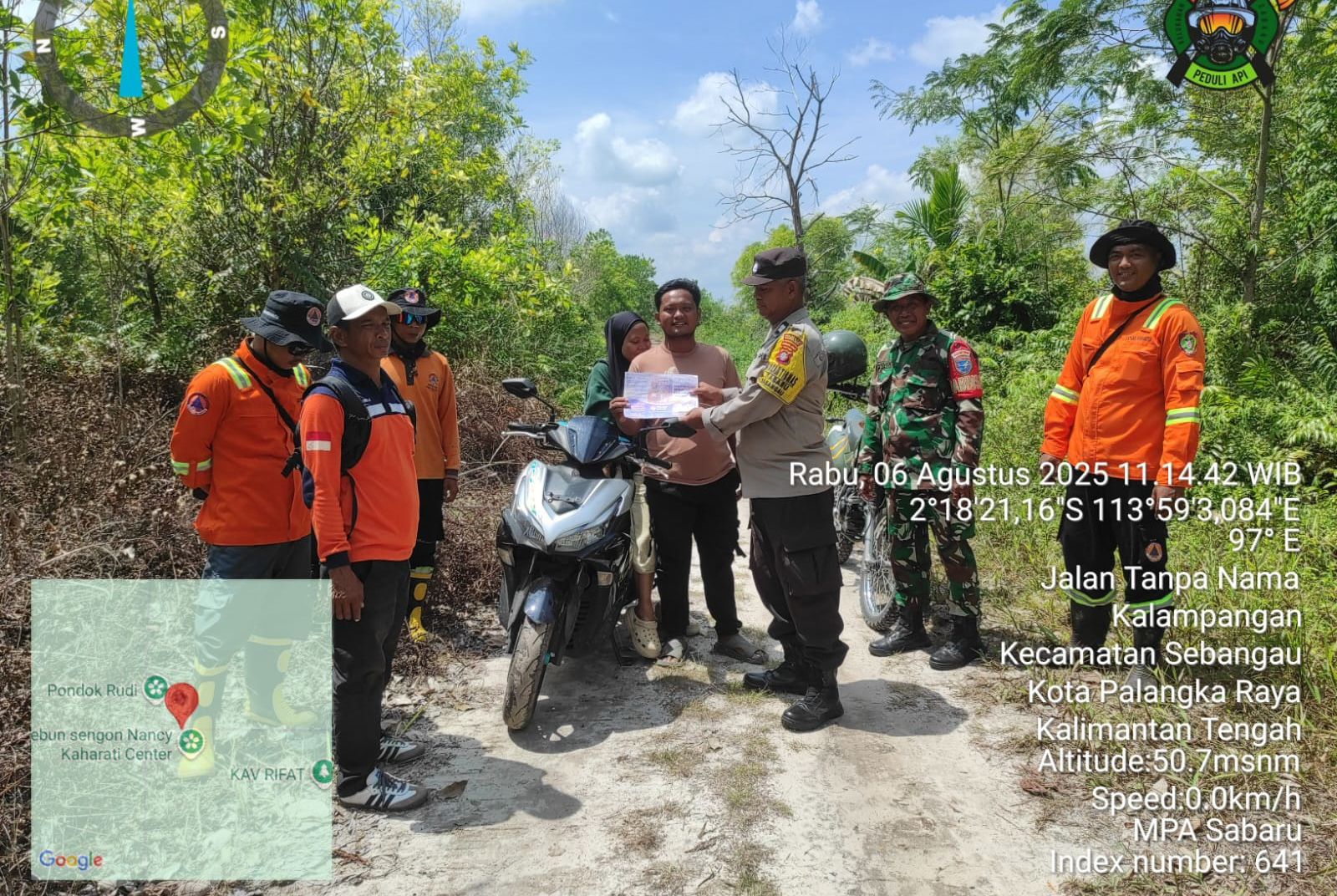 Kapolresta, Kombes Pol. Dedy Supriadi, S.I.K., M.H. melalui Kapolsek, Iptu Ahmad Taufiq menjelaskan, upaya pencegahan kali ini dilakukan oleh Aiptu Irwan Darmawan bersama rekan-rekannya dengan menyampaikan sosialisasi larangan karhutla, Rabu (6/8/2025) siang.