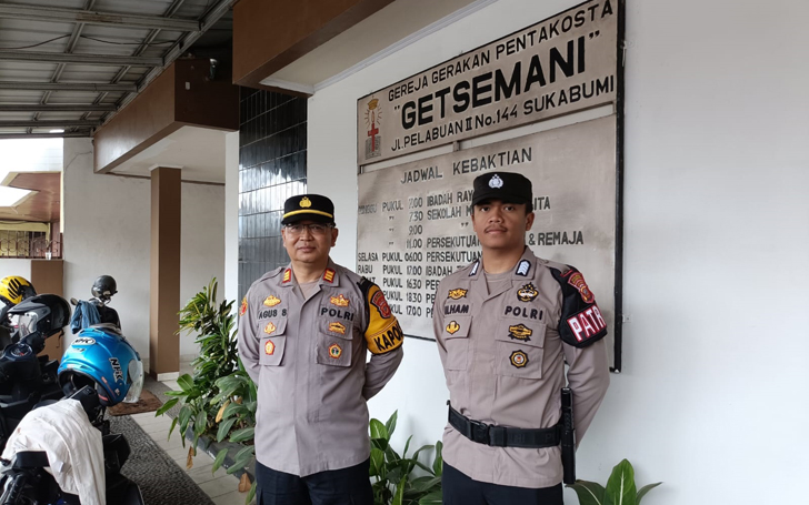 SUKABUMI || Journalistpolice.com –  Guna menciptakan rasa aman dengan mengingat kembali tugas sebagai anggota Kepolisian sebagai pelayan masyarakat Kapolsek Lembursitu AKP Agus Suherman SE pimpin pengamanan di gereja.