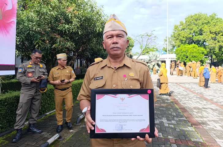 Penghargaan tersebut diserahkan langsung oleh Bupati Garut, Dr. Ir. Abdusy Syakur Amin, M.Eng., IPU, kepada Dinas Sosial Kabupaten Garut pada Apel Gabungan di Lapangan Sekretariat Daerah (Setda) Kabupaten Garut, Senin, 29 Desember 2025.