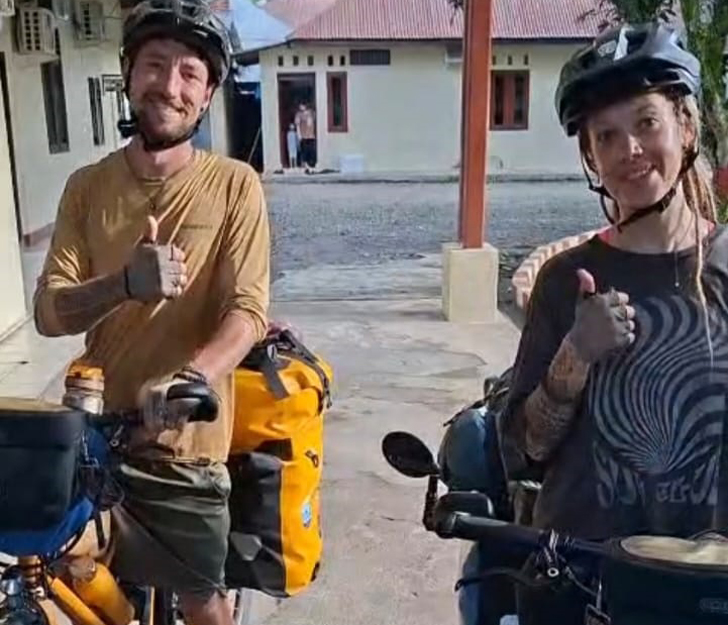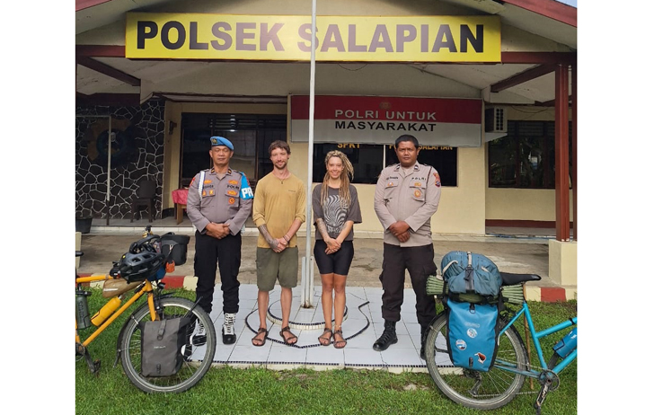Kedua turis tersebut tiba ke Polsek Salapian dengan menggunakan 2 (dua) unit sepeda dayung yang menurut pengakuan nya bahwa kedua turis tersebut datang ke Indonesia dan memulai perjalanan dengan menggunakan sepeda Dayung yang diawali dari Nusa Tenggara Timur hingga pada hari Senin tanggal 06 Oktober 2025 sekitar pukul 19.00 wib telah tiba di Polsek Salapian.