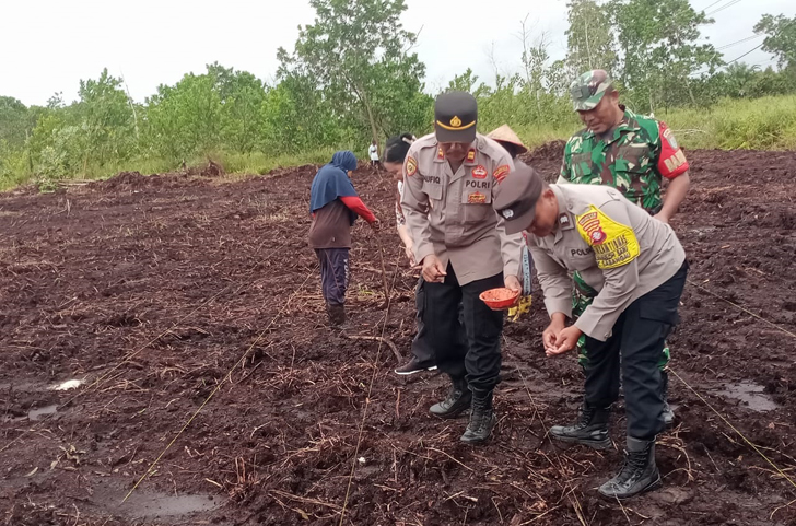 Dalam kesempatan tersebut, pihak kepolisian bersama perwakilan PT. Palmindo Gemilang Kencana dan petani setempat melakukan penanaman jagung secara simbolis.