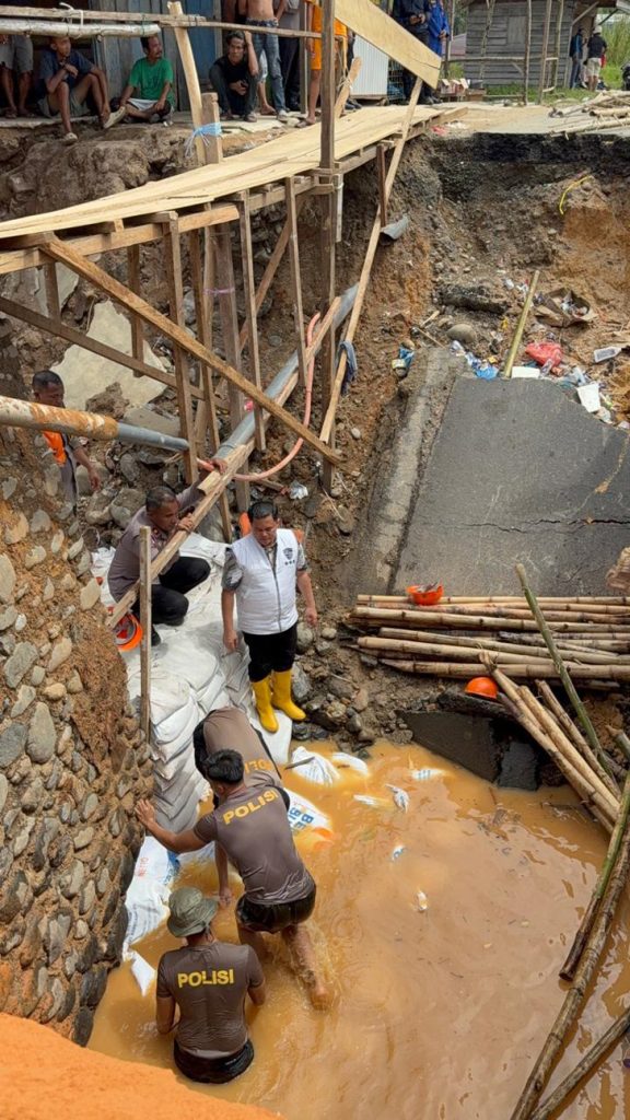 Kombes Pol. Pahala Hotma Mangatur Panjaitan, S.I.K., M.Si., (Dir Pol Airud) dan Kombes Pol. Doni Satrya Sembiring, S.H., S.I.K., M.Si. (Dir Siber Polda Sumut), Polri melakukan perbaikan jembatan yang roboh, semua hal tersebut dilaksanakan demi melayani masyarakat yang terdampak bencana alam.