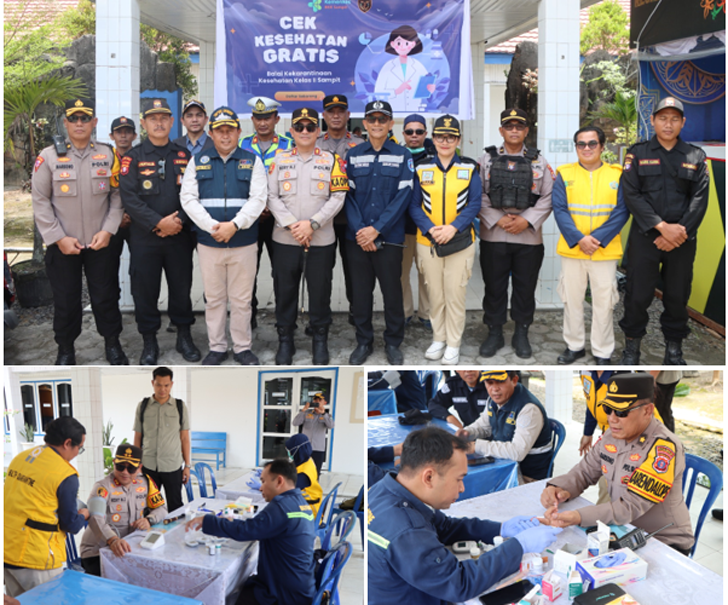 SAMPIT  ||  Journalistpolice.com – Kapolres Kotawaringin Timur (Kotim) AKBP Resky Maulana Zulkarnain, S.H., S.I.K., M.H., melakukan pengecekan layanan kesehatan bagi para penumpang di Pos Pelayanan (Pos Yan) Pelabuhan PT Pelindo III Sampit, Minggu (15/3/2026) siang.