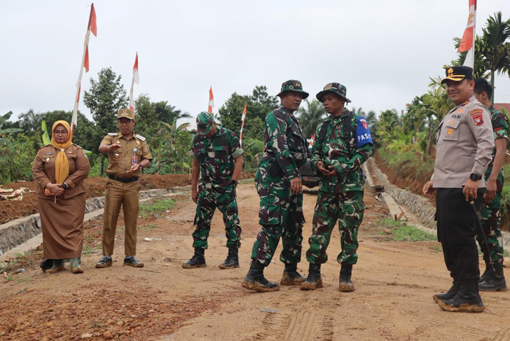 Dalam kesempatan tersebut rombongan meninjau langsung sasaran fisik maupun nonfisik program TMMD serta melaku kan pengecekan kesiapan personel dan sarana pendukung di lapangan.