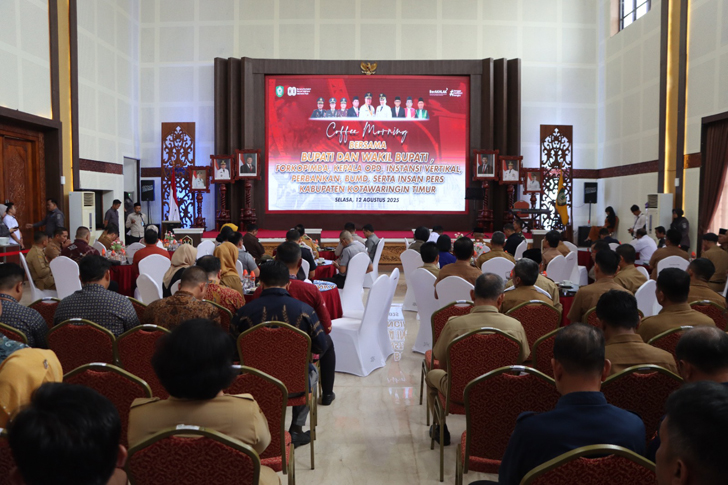 SAMPIT || Journalistpolice.com – Polres Kotim jajaran Polda Kalteng turut serta dalam kegiatan Coffee Morning bersama Bupati dan Wakil Bupati Kotawaringin Timur, Forkopimda, Kepala OPD, instansi vertikal, perbankan, BUMD, serta insan pers, yang digelar di Rumah Jabatan Bupati Kotim pada Selasa pagi, 12 Agustus 2025.