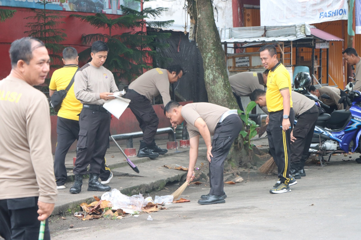 Kegiatan tersebut melibatkan seluruh Pejabat Utama (PJU), personel Polres Kotim, serta personel Dinas Lingkungan Hidup dengan membawa peralatan kebersihan.