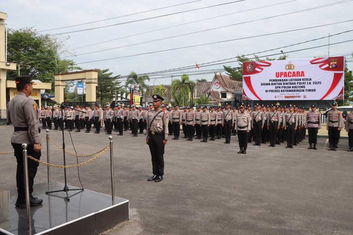 Kapolres Kotim Pimpin Upacara Pembukaan Latihan Kerja Siswa Diktuk Bintara Polri 2025