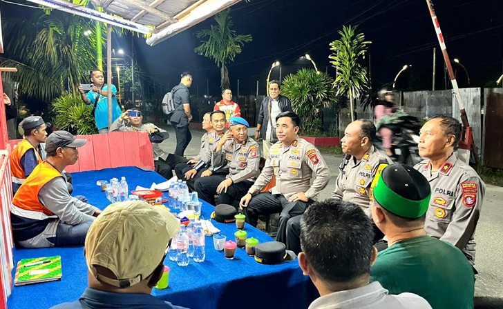 Kapolres Kotim, Didampingi Kasat Binmas Kompol Martin Kamidi, Kapolsek Baamang AKP Moch. Romadhon S.H. dan para Pejabat Utama (PJU), berdialog langsung dengan warga yang berjaga di pos kamling.