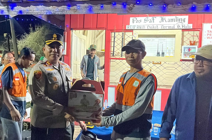 Selain memberikan imbauan kamtibmas, Polres Kotim juga menyerahkan bantuan sosial berupa sembako dan kebutuhan pokok lainnya kepada petugas Sat Kamling. Bantuan ini diharapkan dapat memotivasi warga untuk terus aktif menjaga keamanan lingkungan. (Hmf)