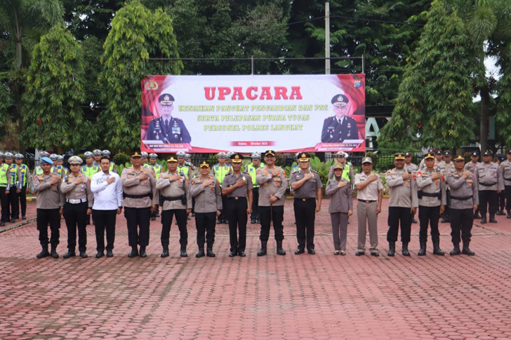 LANGKAT – SUMUT || Journalistpolice.com – Kapores Langkat Kapolres Langkat AKBP David Triyo Prasojo SH, SIK, Msi, pimpin upacara kenaikan pangkat pengabdian dan pelepasan personel purna Tugas Kamis (30/10/25).