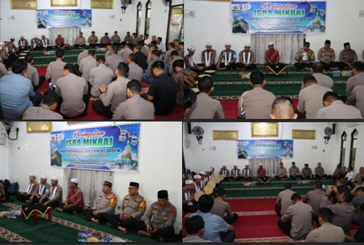 PALANGKA RAYA || Journalistpolice.com – Kepolisian Resor Kota (Polresta) Palangka Raya, Polda Kalteng menggelar peringatan Isra Mi’raj Nabi Muhammad Shalallahu Alaihi Wassalam (SAW) 1446 Hijriah di Mushola Al-Ihsan markas komandonya, Jalan Tjilik Riwut Km. 3,5, Kamis (20/2/2025) pagi.