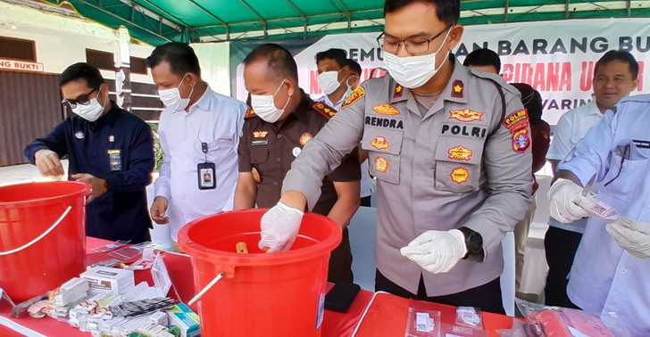Berbagai macam barang bukti dibakar serta dihancurkan diantaranya, mulai narkoba jenis sabu-sabu sebanyak 1147,69 gram, ekstasi 71 butir, obat-obatan 2032 strip,158 blister, 80 pcs.