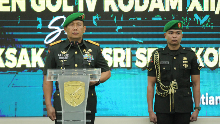 Acara berlangsung di Aula Sudirman, Makodam XII/Tpr, Sabtu (15/2/2025). Pejabat yang melaksanakan Sertijab diantaranya, Aslog Kasdam XII/Tpr dari Kolonel Arh Mokhamad Ibnu Sukelan, S.I.P., kepada Kolonel Inf Muhammad Faizal Nasution, S.I.P. Aster Kasdam XII/Tpr dari Kolonel Arm Djoko Sujarwo kepada Kolonel Inf Denny Noviandi.