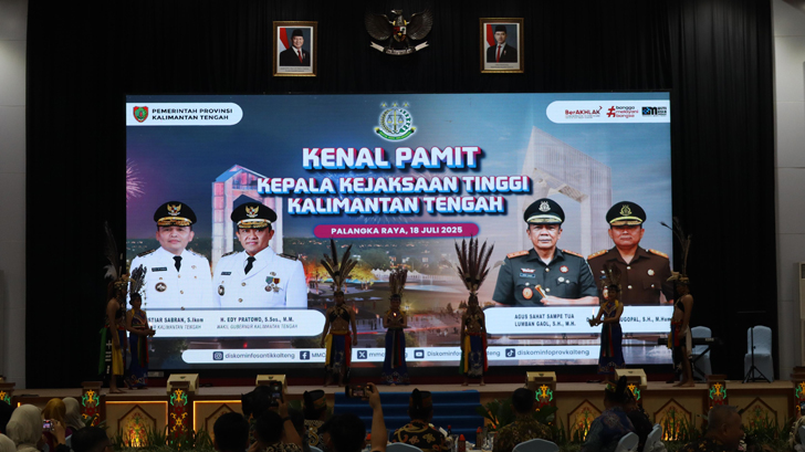PALANGKA RAYA ||  Journalistpolice.com – Kapolda Kalimantan Tengah (Kalteng) Irjen Pol Iwan Kurniawan, menghadiri acara Lepas Sambut Kepala Kejaksaan Tinggi (Kajati) di Aula Jayang Tingang, Kantor Gubernur Kalteng. Jumat (18/7/2025) malam.