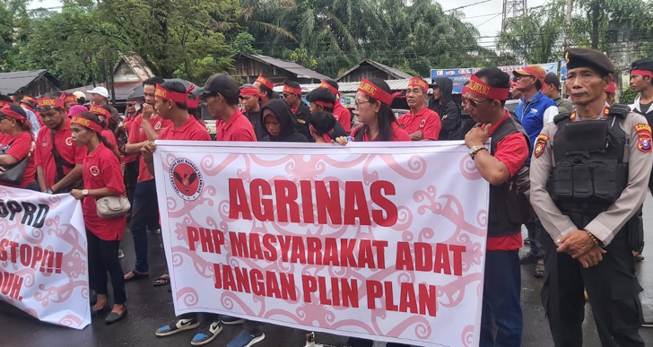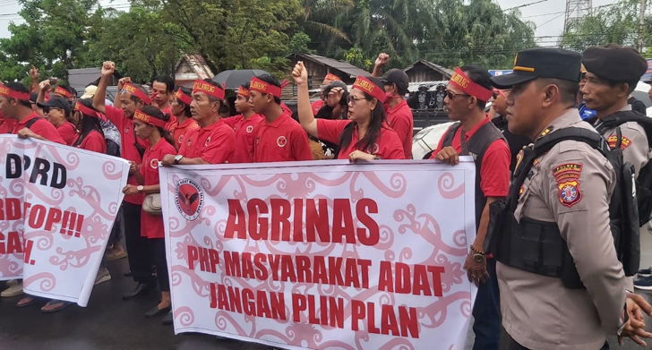 Aksi demo ini dilakukan oleh massa dari ormas Tantara Lawung Adat Mandau Telawang, yang berjumlah sekitar 100 orang, pada hari Jumat pagi (13/02/2026).