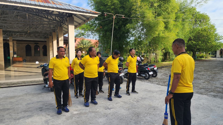 Personel yang terlibat merupakan gabungan dari Satpolairud, Sidokkes, dan Bagops Polres Kotim. Usai apel, personel langsung menyebar. Halaman masjid disapu bersih, sampah dipungut, rumput liar dicabut.