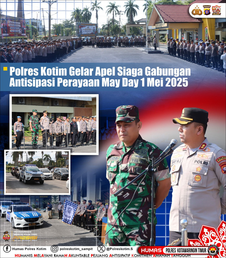 SAMPIT || Journalistpolice.com – Dalam rangka mengantisipasi peringatan Hari Buruh Internasional (May Day) yang jatuh pada Kamis, 1 Mei 2025, Polres Kotim, jajaran Polda Kalimantan Tengah, menggelar apel siaga gabungan di halaman Mapolres setempat.