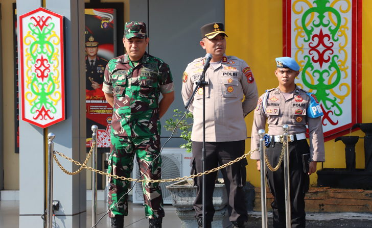 Apel siaga ini dipimpin langsung oleh Kapolres Kotim, AKBP Resky Maulana Zulkarnain, S.H., S.I.K., M.H., didampingi Dandim 1015 – Spt, Letkol. Inf. M. Tandri Subrata, S.A.T., M.Han..