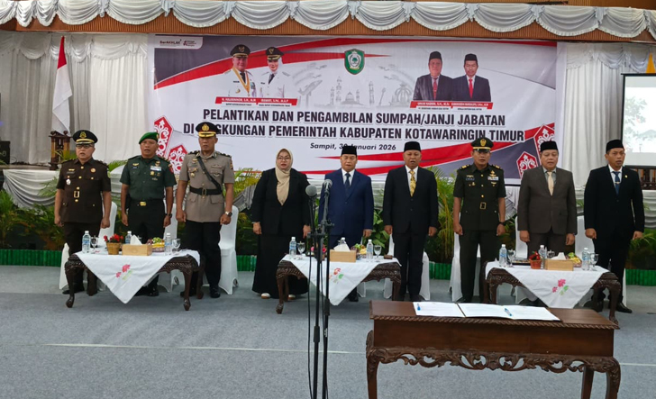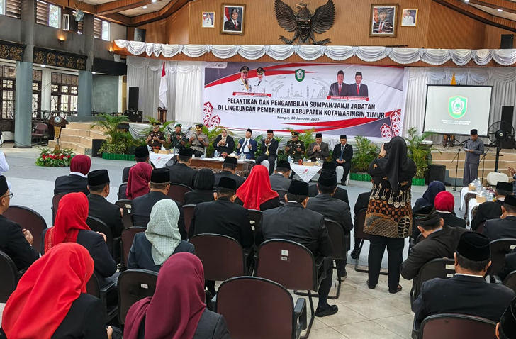 Pelantikan dan sumpah jabatan dipimpin langsung Bupati Kotim Halikinnor, S.H., M.M., serta dihadiri Wakil Bupati Kotim, unsur Forkopimda, instansi terkait, dan para pejabat yang dilantik.