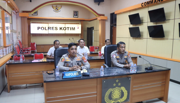 Kapolres Kotim AKBP Resky Maulana Zulkarnain, S.H., S.I.K., M.H., didampingi Wakapolres Kompol Christian Maruli Tua Siregar, S.I.K., M.M., memimpin pelaksanaan Zoom Meeting di Aula Lobi Polres setempat. Kegiatan ini turut dihadiri Kasat Reskrim/KBO Reskrim, Kasat Narkoba, serta Kasikum Polres Kotim.