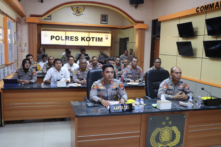 SAMPIT – KALTENG || Journalistpolice.com – Polres Kotawaringin Timur (Polres Kotim) mengikuti Vidio Conference yang dipimpin langsung oleh Kapoda Kalteng Inspektur Jenderal Polisi Iwan Kurniawan, S.I.K.,M.Si.dan Waka Polda Kalteng Brigadir Jenderal Polisi Dr Rakhmat Setyadi, S.I.K.,S.H.,M.H.yang diikuti Polres jajaran, Pada hari Senin pagi. (20/10/2025)
