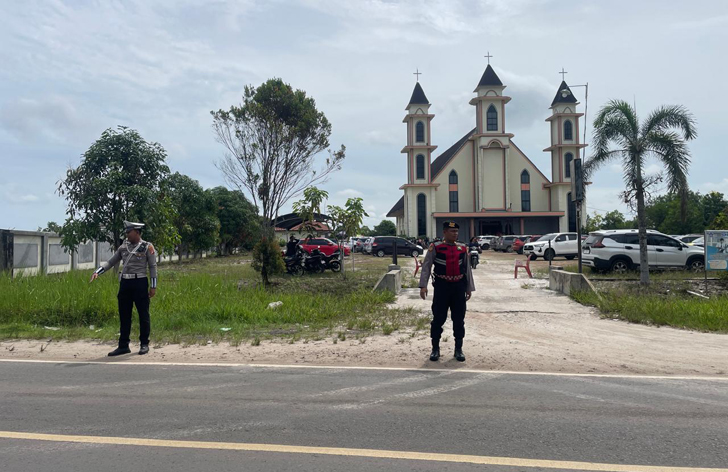 Pengamanan dilakukan secara humanis melalui pemberian imbauan kamtibmas kepada jemaat, pengaturan arus lalu lintas di sekitar lokasi, patroli di area kegiatan, serta koordinasi intensif dengan pihak gereja. Seluruh rangkaian ibadah berakhir pada pukul 11.30 WIB dalam situasi aman dan kondusif.
