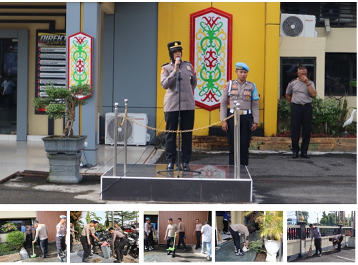 Selama satu jam, personel bergotong royong membersihkan halaman Mapolres, saluran air, hingga ruang kerja masing-masing satuan fungsi.
