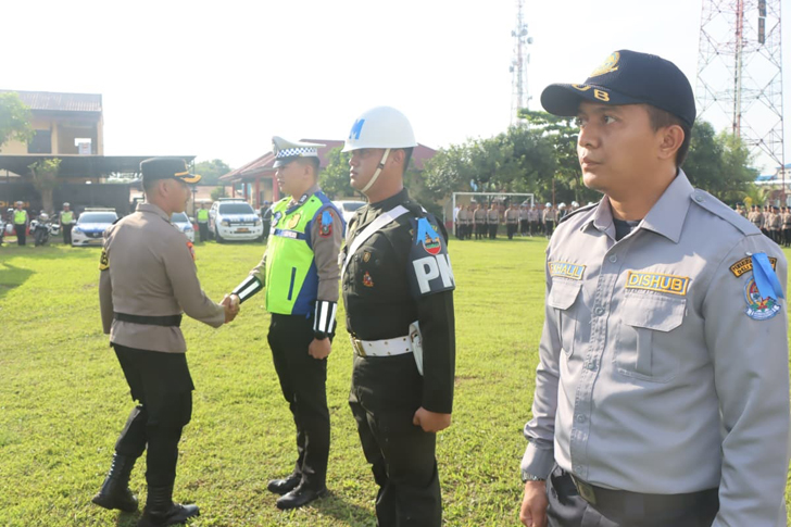 Personel gabungan dari Polri, TNI, Brimob, Subdenpom, Satpol PP, Dishub, Damkar, BPBD, dan Avsec Bandara Kualanamu juga mengambil bagian dalam apel tersebut.