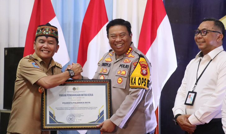 Polresta Palangka Raya Terima Piagam Penghargaan Mitra Kerja