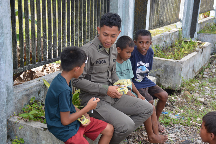 Dalam kesempatan tersebut, Briptu Yoga Yandika berinisiatif membagikan susu sekaligus berinteraksi langsung dengan anak-anak dan masyarakat setempat guna mempererat silaturahmi serta membangun rasa kekeluargaan.