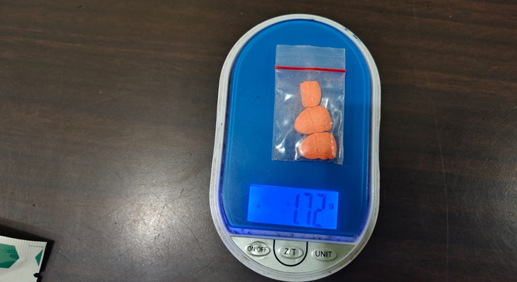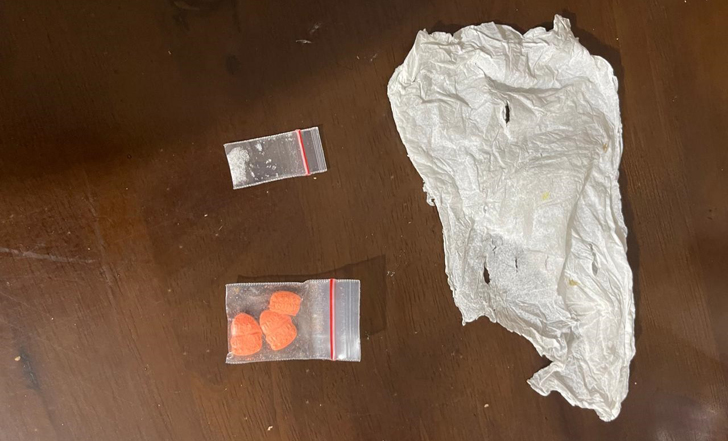Selain itu, petugas juga menemukan dua setengah butir pil berwarna oranye yang diduga narkotika jenis ekstasi, dibungkus tisu dan dimasukkan ke dalam plastik bening.