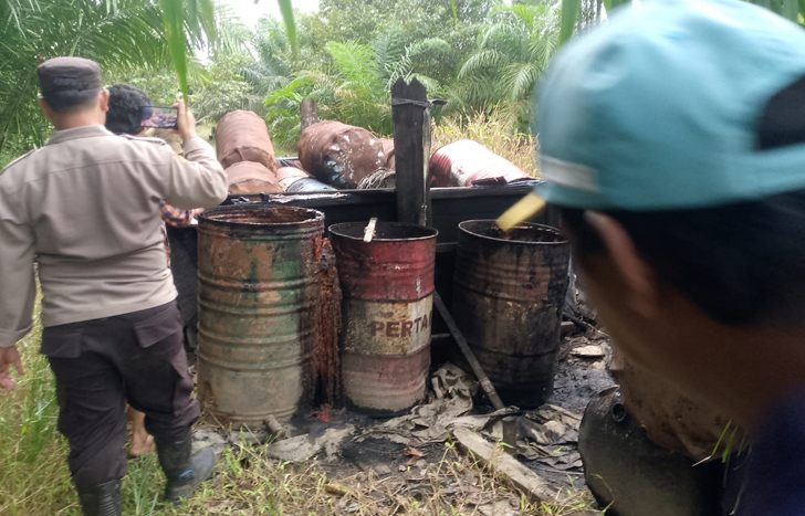 Dari hasil pengecekan, petugas menemukan 43 drum kosong, dua drum berisi CPO beku, satu profil tank ukuran 1.100 liter kosong, satu profil tank ukuran 2.200 liter kosong, dua bak penampung dari besi plat berkapasitas sekitar 10.000 liter dalam kondisi kosong, serta satu pondok kayu tanpa aktivitas.
