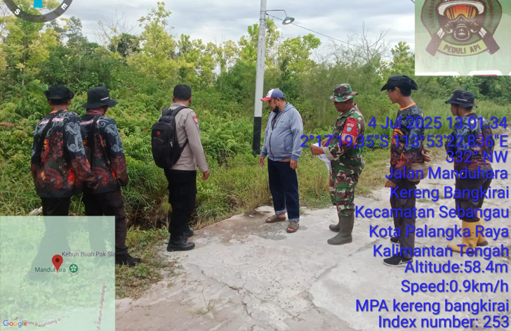 PALANGKA RAYA || Journalistpolice.com – Menyikapi potensi meningkatnya kebakaran hutan dan lahan (karhutla) selama musim kemarau, Polsek Sabangau melalui Bhabinkamtibmas Kelurahan Kereng Bangkirai melaksanakan kegiatan patroli bersama tim Masyarakat Peduli Api (MPA) dan Babinsa, Jumat (4/7/2025).