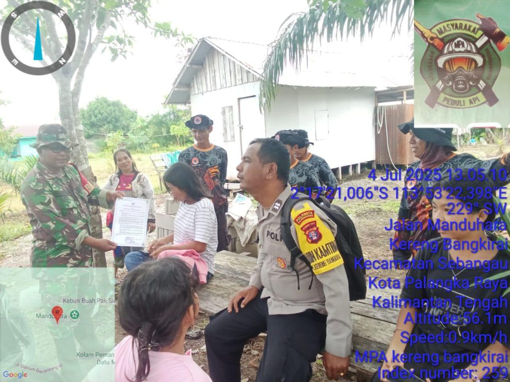 Petugas menyampaikan Maklumat Kapolda Kalteng tentang larangan membakar hutan dan lahan, serta menjelaskan sanksi hukum bagi pelanggarnya.