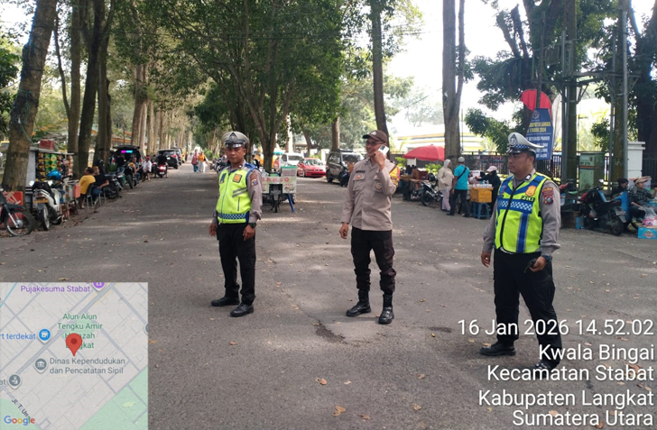 Kasat Lantas Polres Langkat AKP Mhd. Tommy Franata, S.T.K., S.I.K., M.H., M.T., menyampaikan bahwa personel melaksanakan pengaturan lalu lintas (gatur lalin) pada titik strong point sesuai ploting.