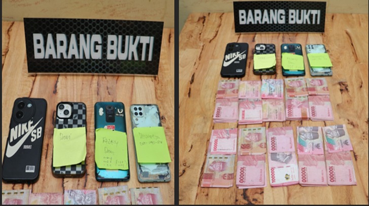Barang bukti yang turut diamankan antara lain uang tunai Rp10.000.000, satu unit Samsung Galaxy A22, dan satu unit iPhone 13.