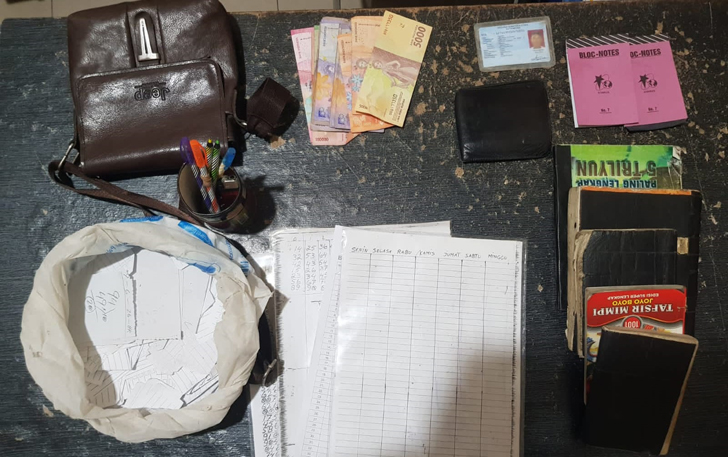Tersangka yang diamankan diketahui bernama Tugiono (55), warga setempat. Dalam penangkapan tersebut, petugas mengamankan sejumlah barang bukti berupa uang tunai Rp 315.000,-, satu buah tas, satu buah dompet berisi uang Rp 10.000.