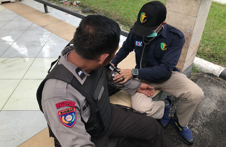 “Dengan kondisi yang bugar dan prima maka diharapkan seluruh personel dapat melaksanakan tugas pam secara optimal, dengan rangkaian yang kami lakukan yakni mulai dari pemeriksaan tanda-tanda vital, tekanan darah, nadi, suhu dan respirasi,” jelasnya.