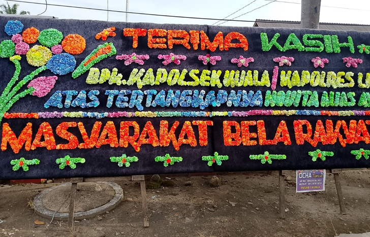 Papan-papan tersebut berisi pesan apresiasi atas kerja cepat, profesional, dan tegas jajaran kepolisian dalam menjaga rasa keadilan dan keamanan di tengah masyarakat.