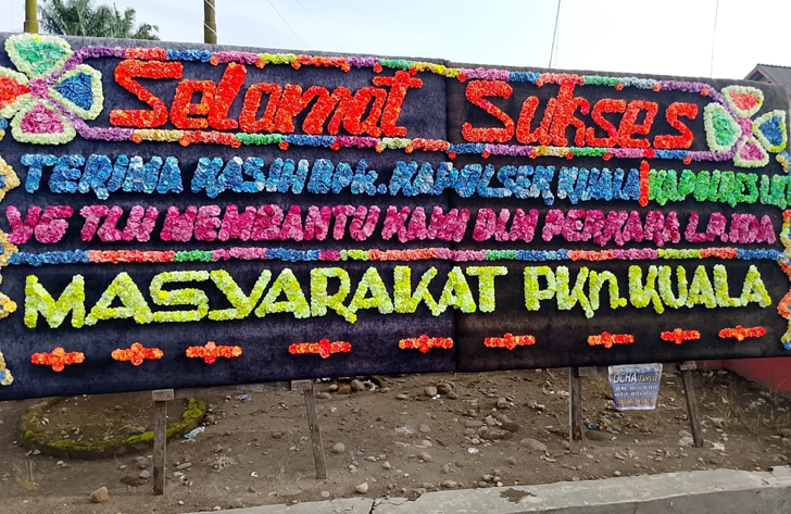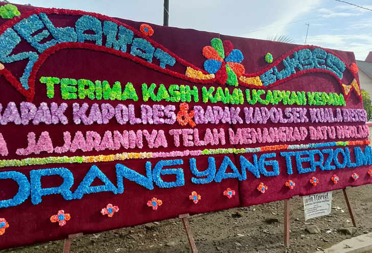 Sebagai bentuk dukungan dan rasa syukur, Polsek Kuala dibanjiri papan bunga ucapan terima kasih dari masyarakat.